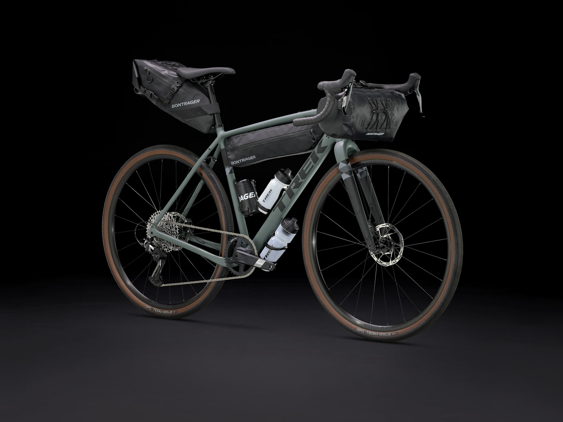 Los soportes para bolsa y salpicadera integrados en el cuadro facilitan la carga de equipo y agua.