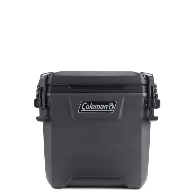 El cooler portátil de 28qt de la serie Convoy™ de alta resistencia está hecho para moverse usando las manijas de cuerda reflectante antideslizantes, perfectas para un viaje de camping.