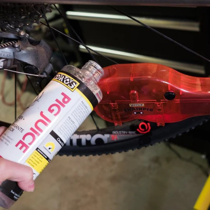 La fórmula preactivada increíblemente eficaz elimina rápidamente los aceites, la suciedad y la tierra. Seguro para cualquier material, biodegradable, sin disolventes, de origen vegetal y sin COV. Desarrollado específicamente para nuestro limpiador de cadenas Chain Pig que devora la suciedad, Pig Juice es un desengrasante/limpiador impresionantemente eficaz y económico que hace que la limpieza de la transmisión de bicicletas sea rápida, fácil y segura para cualquier persona. Libre de productos químicos agresivos, lo suficientemente suave para usar en cualquier material, totalmente biodegradable, sin fragancias, sin colorantes, sin disolventes, de origen vegetal y sin COV.