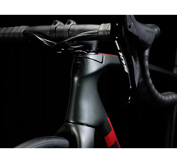 Un cuadro y una horquilla de carbono OCLV Serie 500 ligeros y aerodinámicos, una transmisión completa Shimano 105 de 11 velocidades, potentes frenos de disco hidráulicos Shimano de montaje plano, enrutamiento interno de cables para una apariencia limpia y ruedas Bontrager Paradigm SL Tubeless Ready.