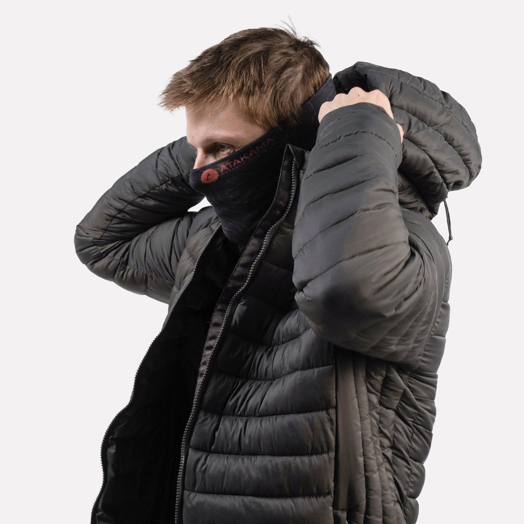 Bandana o Buff multifuncional para actividades al aire libre con diseño inspirado en colores y texturas de Chile, ilustradas por artistas chilenas.