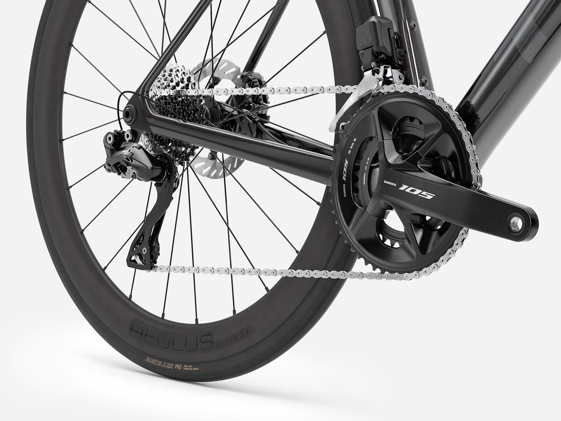 La Madone SL 6 Gen 8 es una bici de carrera ligera y aerodinámica que ofrece tecnología deportiva de élite a un precio más bajo con una estructura de Carbono OCLV 500 más barata que su equivalente SLR. El grupo electrónico Shimano 105 Di2 permite un cambio electrónico ultrarrápido y se combina con un manubrio de aleación para que el precio sea económico. Además, está equipada con ruedas de carbono para aumentar su ligereza.