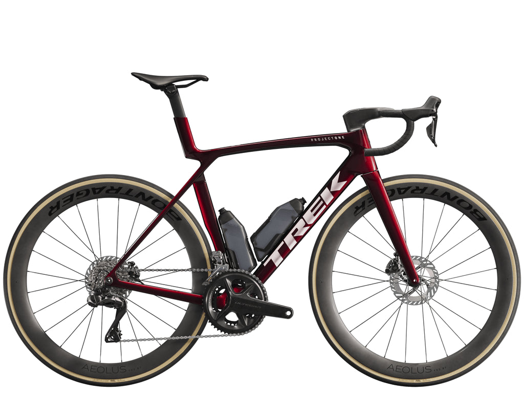 Un cuadro muy ligero fabricado con nuestro Carbono OCLV Serie 900 del más alto nivel con tubos aerodinámicos y tecnología de confort IsoFlow, y Ánforas y Porta ánforas Aerodinámica RSL que ahorran watts. Un conjunto 2x12 Shimano Ultegra Di2 que ofrece unos cambios muy rápidos y completamente personalizables. Un porta eje desmontable universal para que puedas conseguir un repuesto en cualquier lugar. Además, está equipada con ruedas de carbono Bontrager Aeolus Pro 51 sin cámara de aire y una barra/poste de manubrio Trek Aero RSL de una pieza.