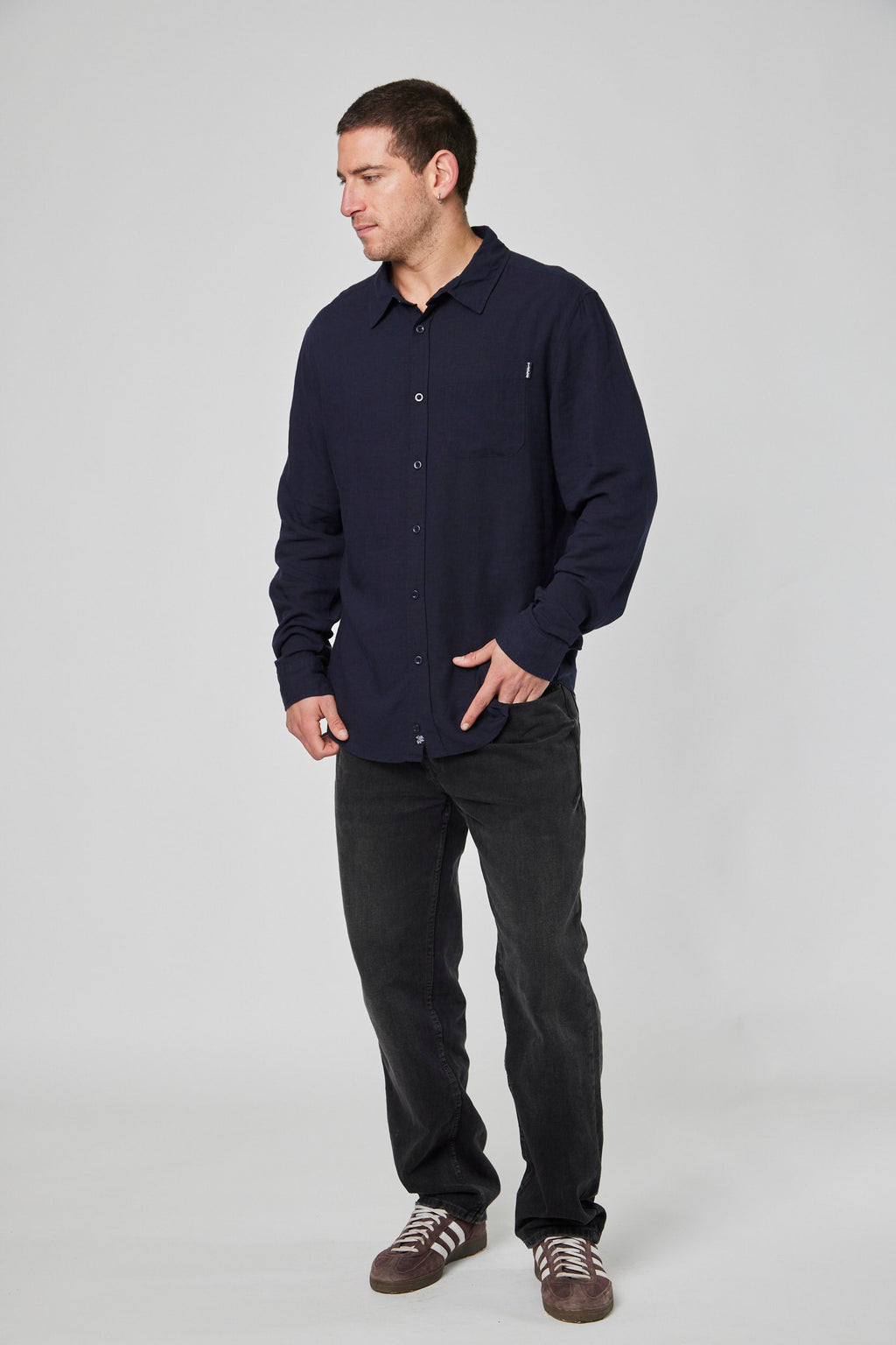 Camisa solid manga larga. Hecha de 40% lino y 60% algodón reciclado. Hiper liviana, fresca, estilosa y simple. Ideal para toda ocasión, perfecta para esos eventos en que necesitas estar un poco más arreglado o esos días de oficina. La harán tu aliada todo el verano. Cuidados: No usar secadora.