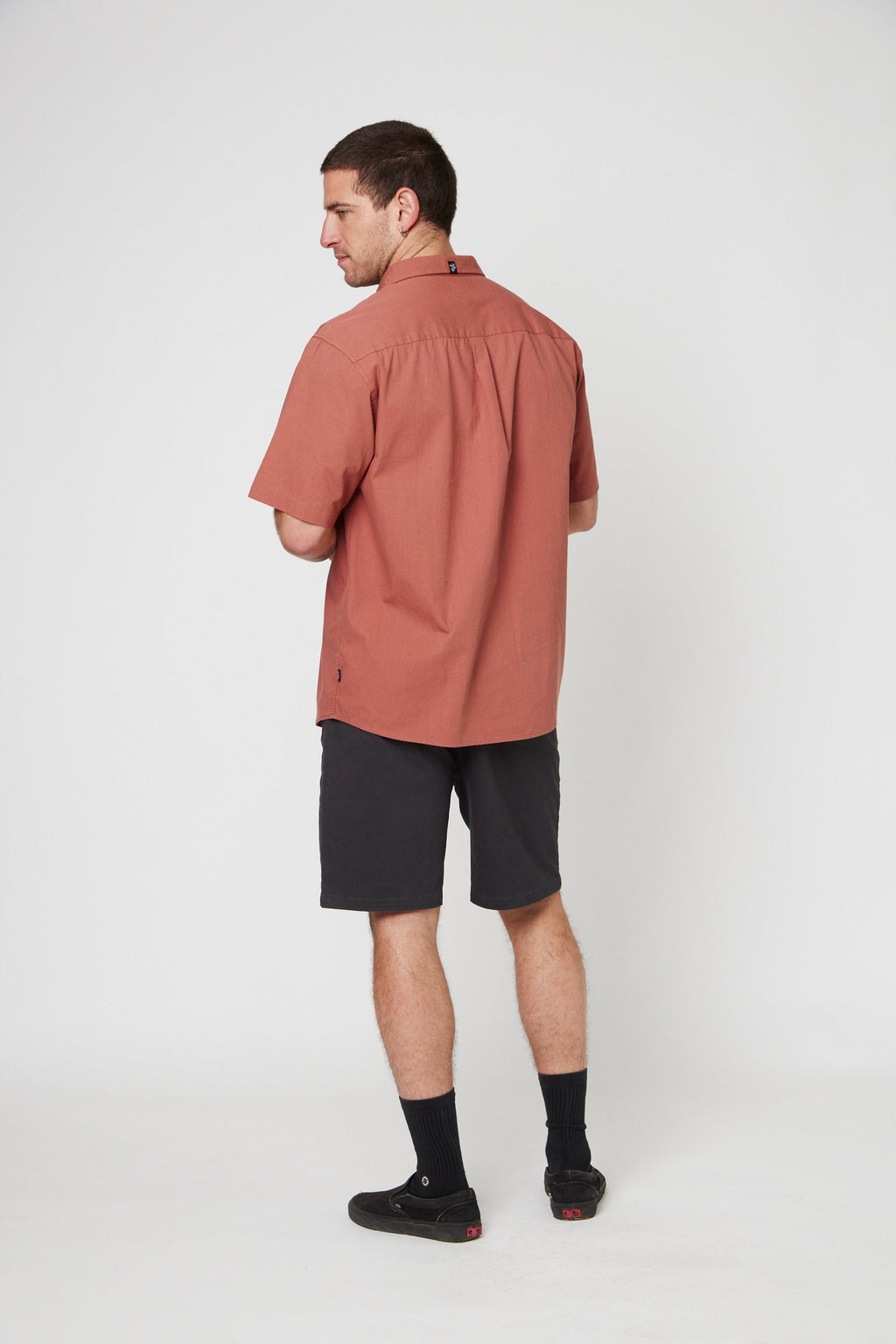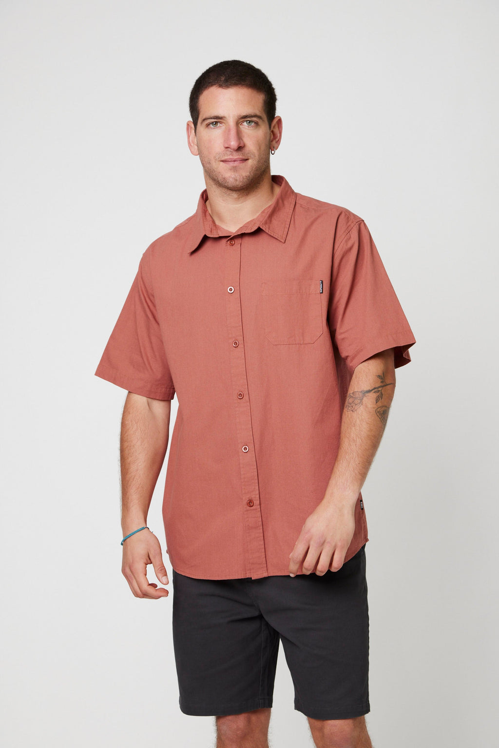 Camisa solid manga corta, estructurada y de calce holgado. 100% algodón reciclado. Ideal para toda ocasión, perfecta para esos eventos en que necesitas estar un poco más arreglado.