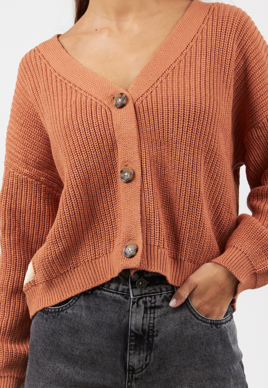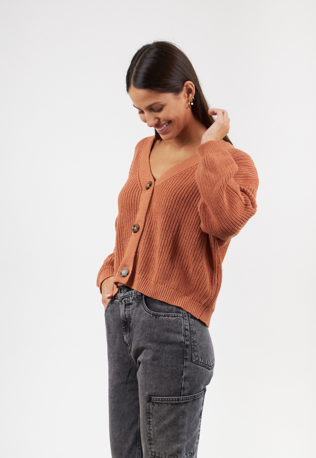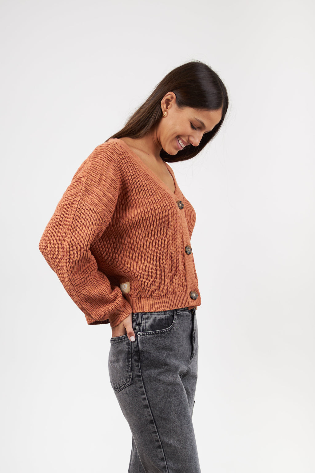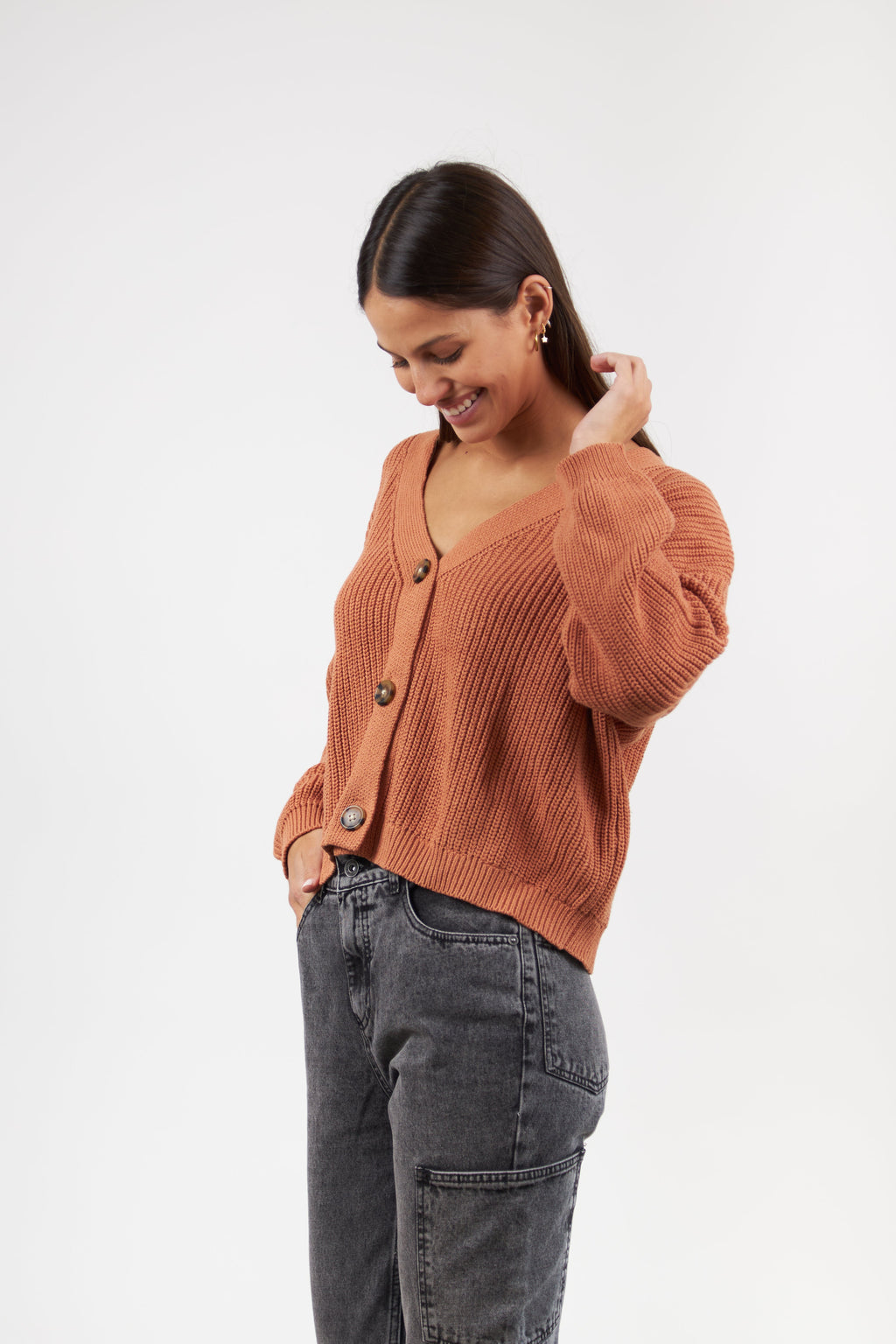 Un chaleco terracota mujer inspirado en los tonos otoñales, ideal para complementar tus outfits invernales con un toque casual y versátil. Nuestro Chaleco Autumn Terracota es un cárdigan con cuello en V y botones, diseñado para ser tu prenda favorita en cualquier ocasión. Su tejido ligero y cómodo lo convierte en un must-have para esta temporada.