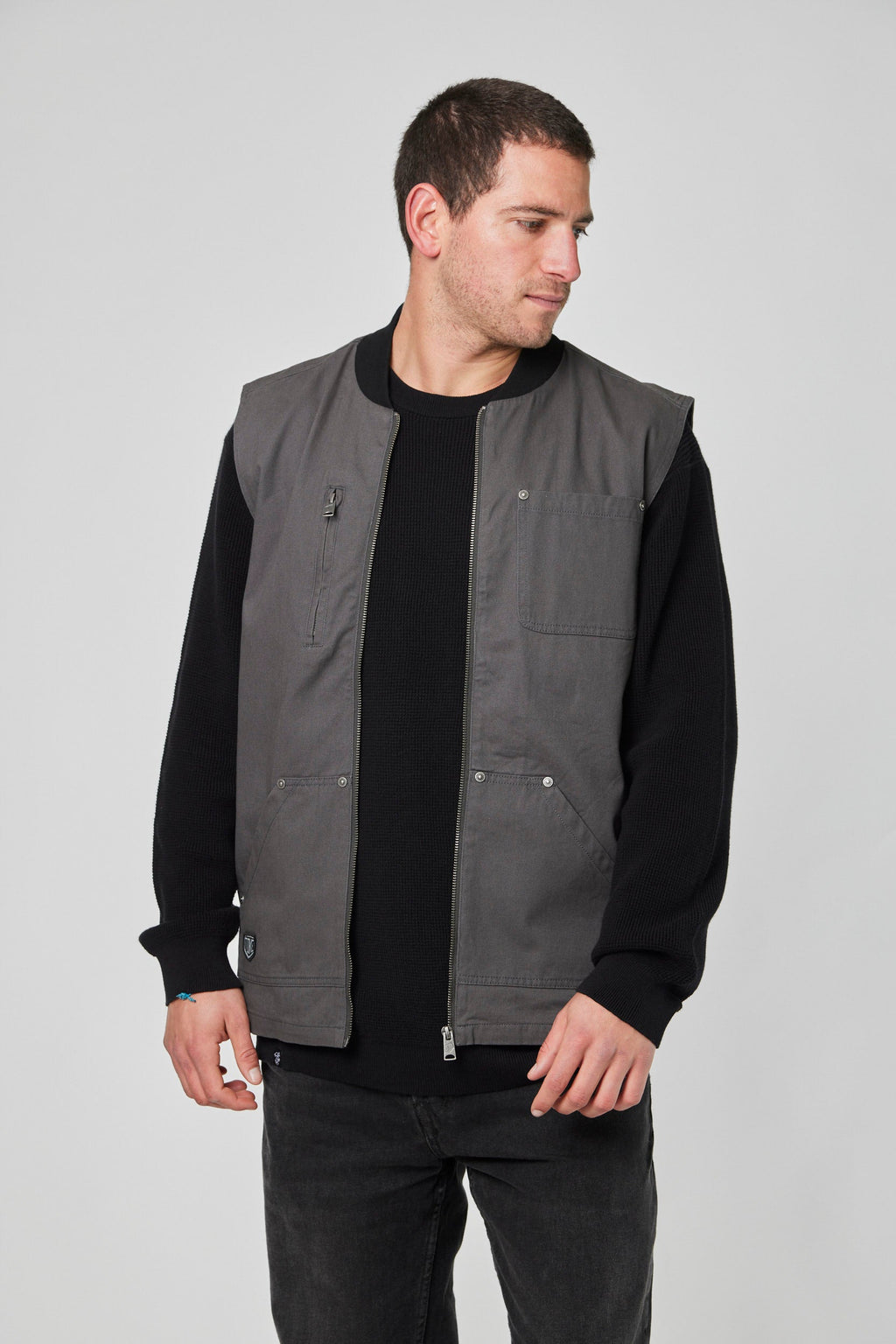 Una chaqueta gris diseñada para quienes buscan estilo y funcionalidad en una sola prenda. Nuestra Chaqueta Roadie sin mangas en color Gris se inspira en el diseño tipo pescador, con un enfoque minimalista y detalles que realzan su estilo ondero. Su calce true to size la hace ideal para usar con una polera o camisa, pero si la prefieres sobre un polerón, recomendamos elegir una talla más.