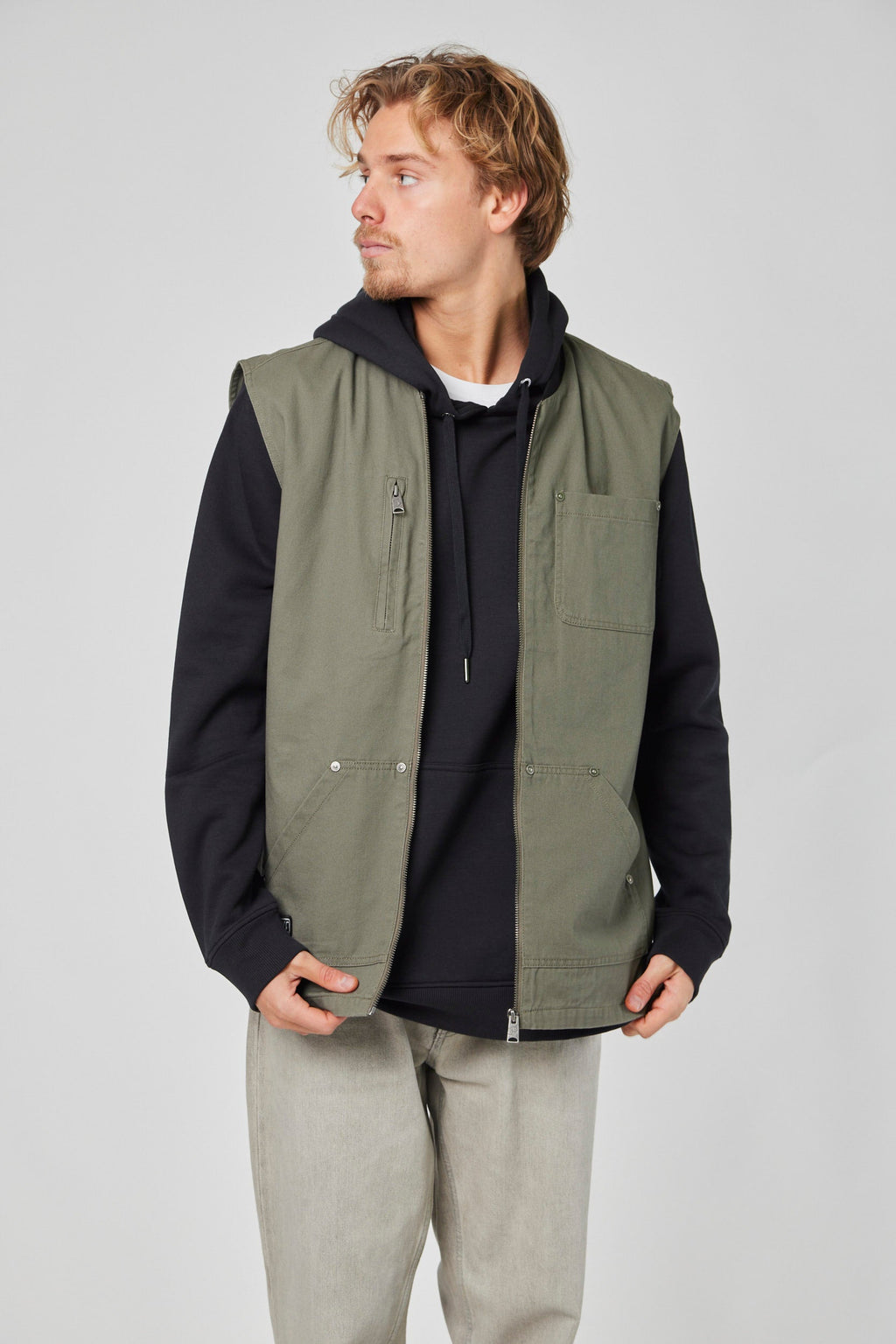 Una chaqueta sin mangas verde para hombre con estilo minimalista y mucha actitud. Nuestra Chaqueta Roadie Verde es una propuesta diferente y funcional para esta temporada. Inspirada en el diseño tipo pescador. Chaqueta vest de calce true to size, pero si prefieres un look más relajado sobre un polerón, te recomendamos elegir una talla más.