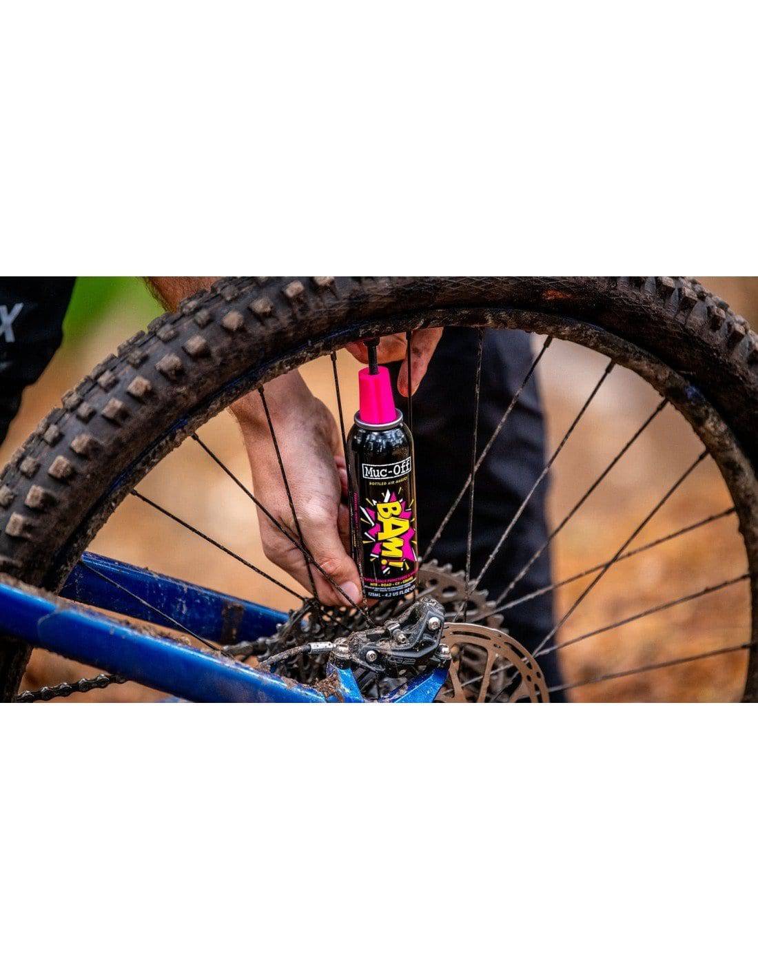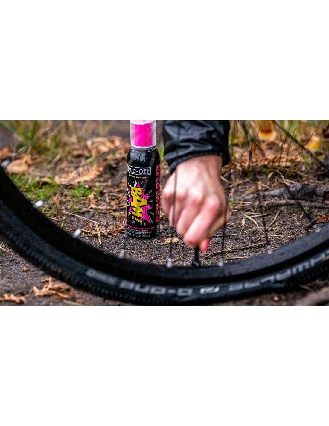 B.A.M infla y repara rápidamente los pinchazos al mismo tiempo inyectando espuma de látex y aire en un neumático o cámara. B.A.M es la salvada de emergencia perfecta que puede sujetarse al cuadro de una bicicleta utilizando el nuevo Muc-Off B.A.M Utility Belt (se vende por separado) o transportarse en una mochila. Compatible con ruedas de Ruta, CX, Gravel y MTB, así como con la mayoría de los líquidos anti pinchazos.