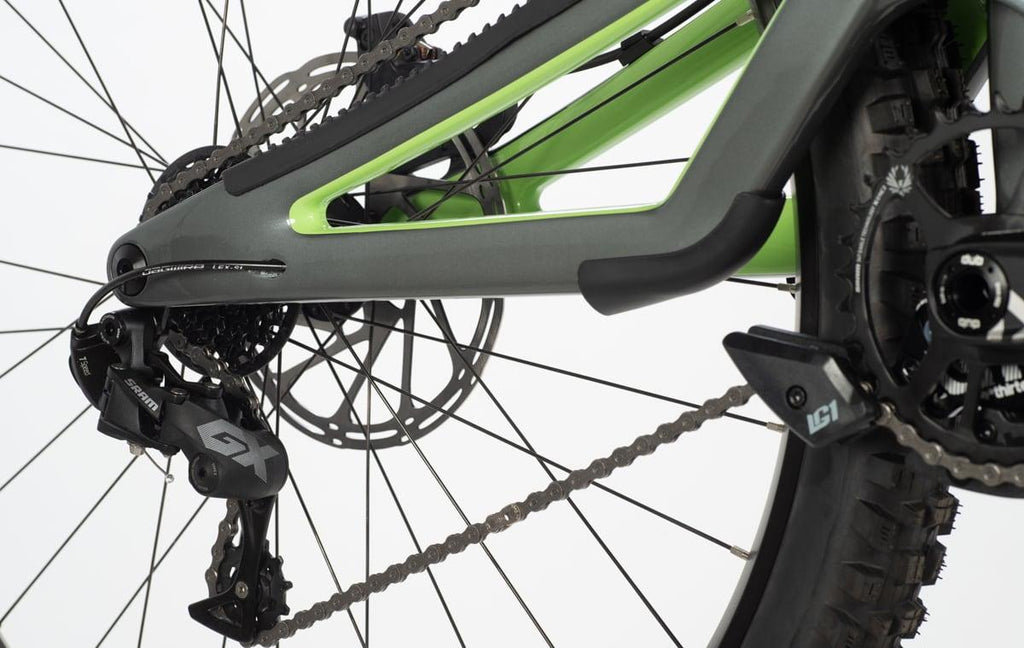 El cuadro de carbono está diseñado para máxima resistencia y mayor amortiguación de vibraciones. El diseño de su suspensión se basa en la precisión, capaz de absorber cualquier obstáculo, sin verse afectada por las fuerzas de la transmisión. El recorrido de la Horquilla ajustable, asegura un ajuste fácil de preferencia del piloto.