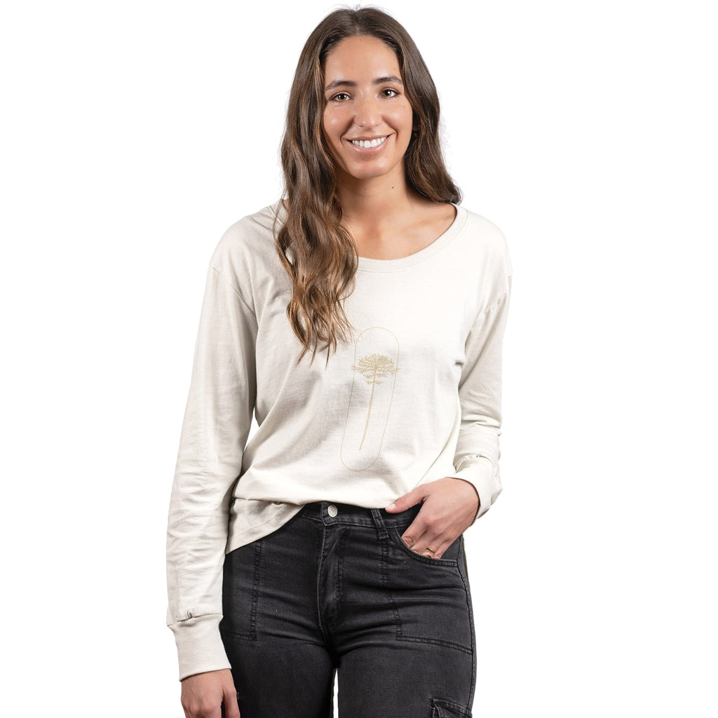 Polera fabricada 100% con algodón orgánico, cultivado sin el uso de pesticidas, fertilizantes sintéticos u otros productos químicos dañinos para el medio ambiente y la salud.