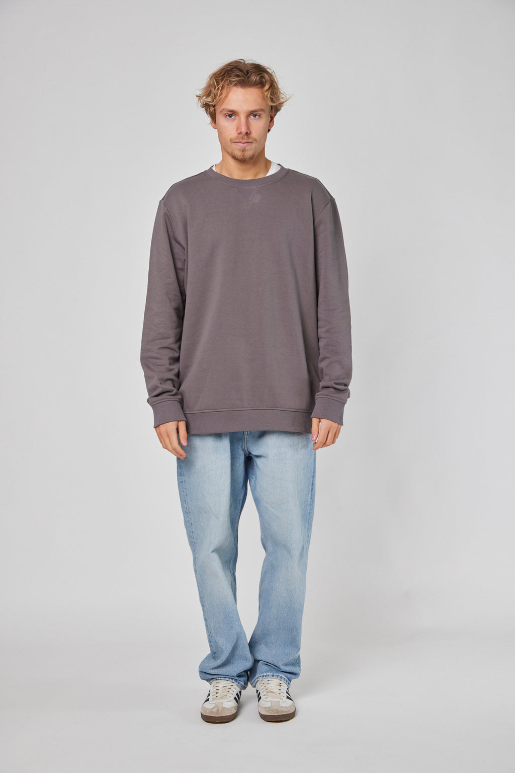 Un polerón gris hombre perfecto para cualquier ocasión. Nuestro Polerón Crew Gris es un crewneck ligero, confeccionado en 100% algodón reciclado con una textura delgada pero abrigadora. Diseñado para esas tardes frescas después del sunset, con un calce regular y relajado que lo convierte en un imprescindible en tu clóset.