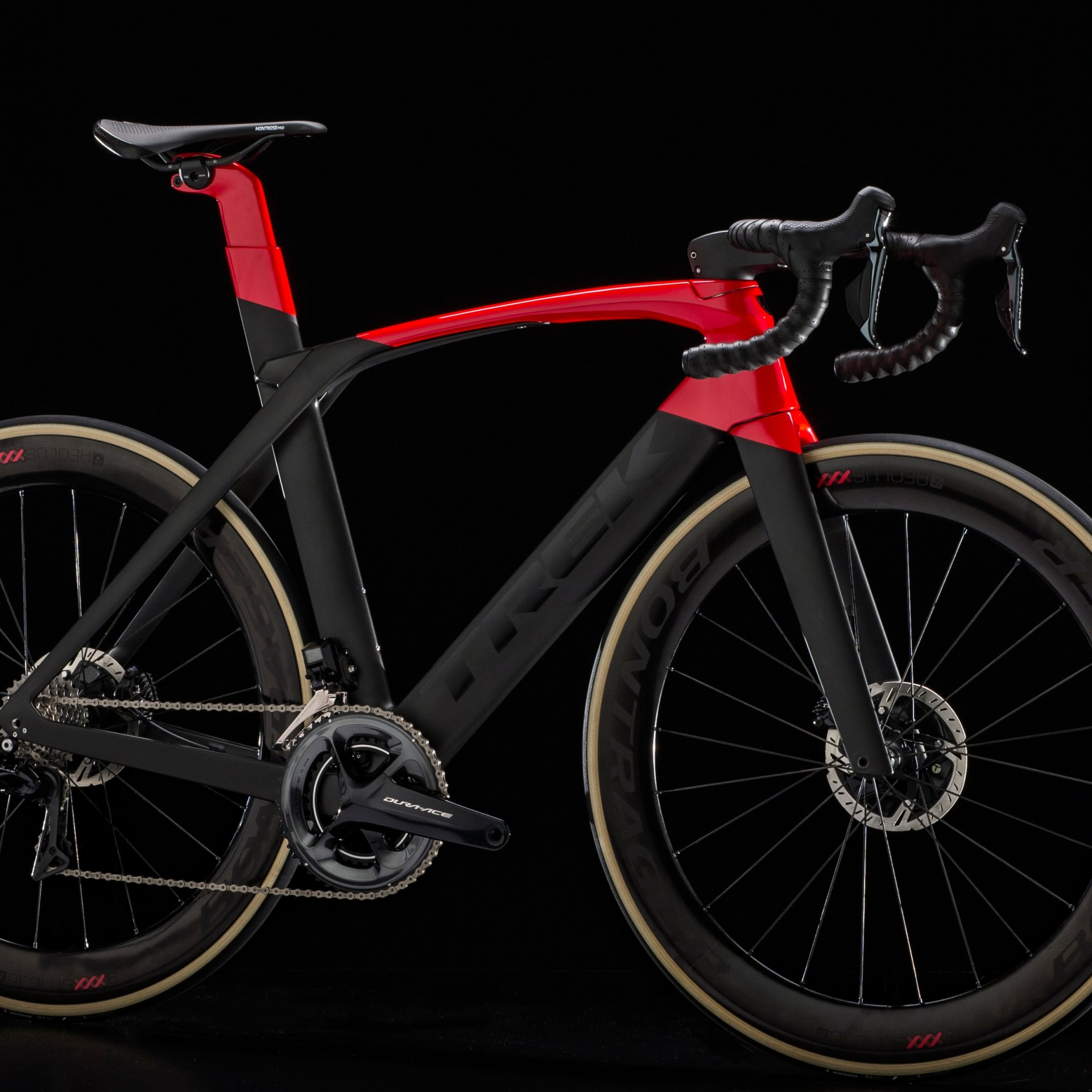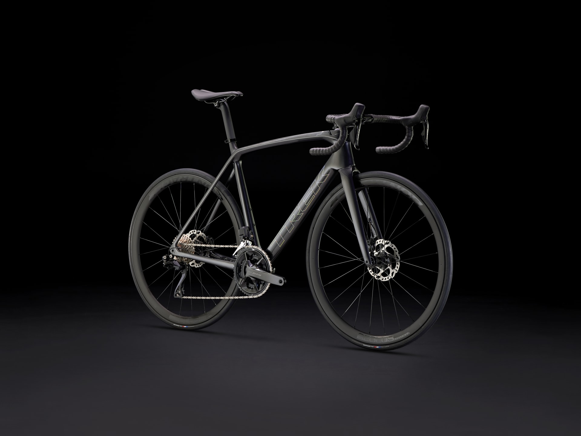Cuadro y horquilla ligeros y aerodinámicos de carbono OCLV Serie 500, transmisión electrónica inalámbrica Shimano 105 Di2 2x12 y ruedas Bontrager Paradigm Comp. Los frenos de disco aportan una mayor potencia de frenada y una modulación más precisa.